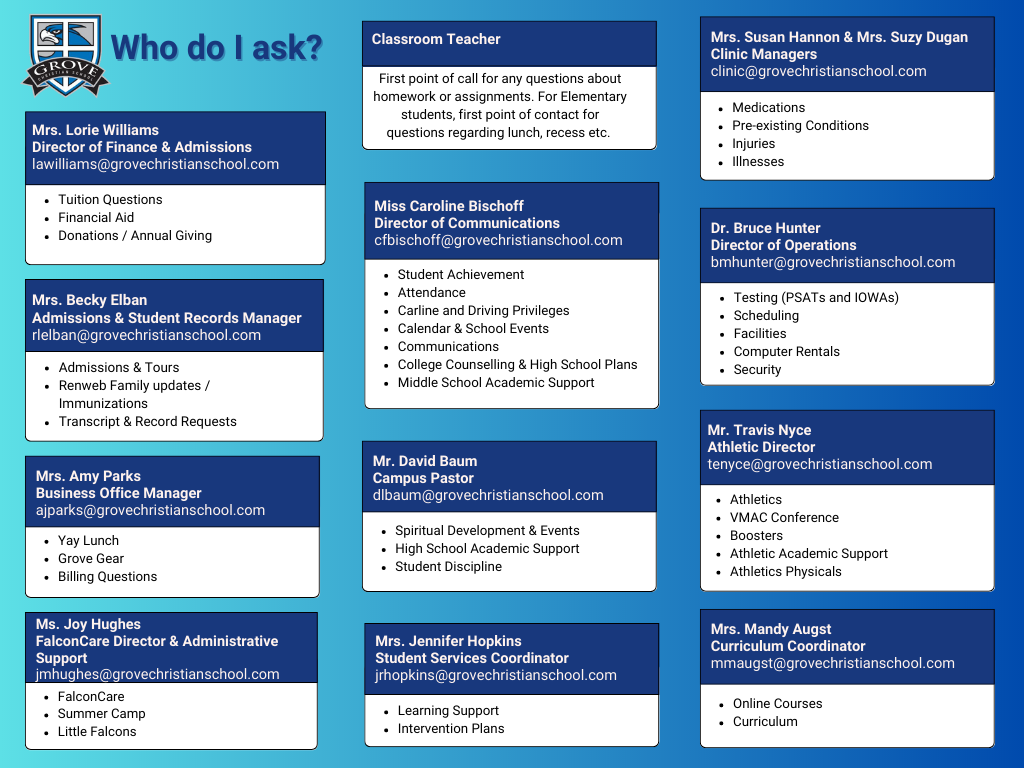 Your parent information is right here! Use this resource page to get quick access and answers to all of your questions – from school supplies to dress code questions and various forms you might need.